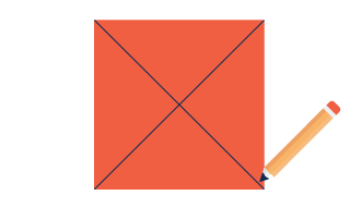 Pour commencer, découpez un carré de papier de la taille souhaitée pour votre boîte à cadeaux. Relier les 4 coins pour former un X, en veillant à ce qu'ils soient exactement centrés.