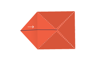 Après avoir ouvert les côtés, repliez les volets triangulaire du haut et du bas vers l'intérieur. Deux de vos plis initiaux, les volets triangulaires du haut et du bas, doivent rester orientés vers le centre.