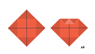 Repliez les triangles supérieurs plus petits sur les triangles latéraux. Une fois qu'il ont été repliés, pliez les deux triangles latéraux qui sont encore intacts. Ils doivent être entièrement pliés jusqu'à ce que la coupe soit atteinte.