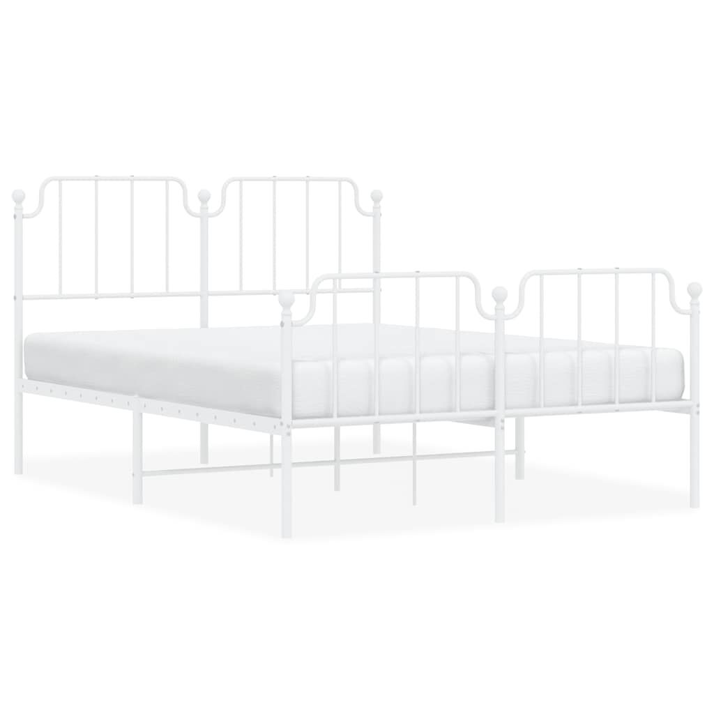 vidaXL Cadre de lit métal sans matelas et pied de lit blanc 135x190 cm
