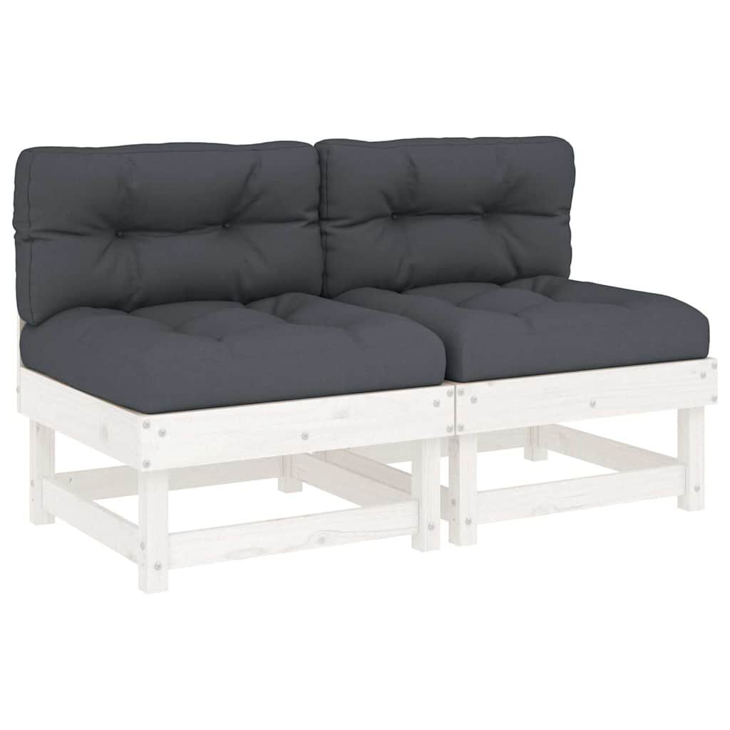 vidaXL Canapés centraux avec coussins 2 pcs blanc bois de pin massif