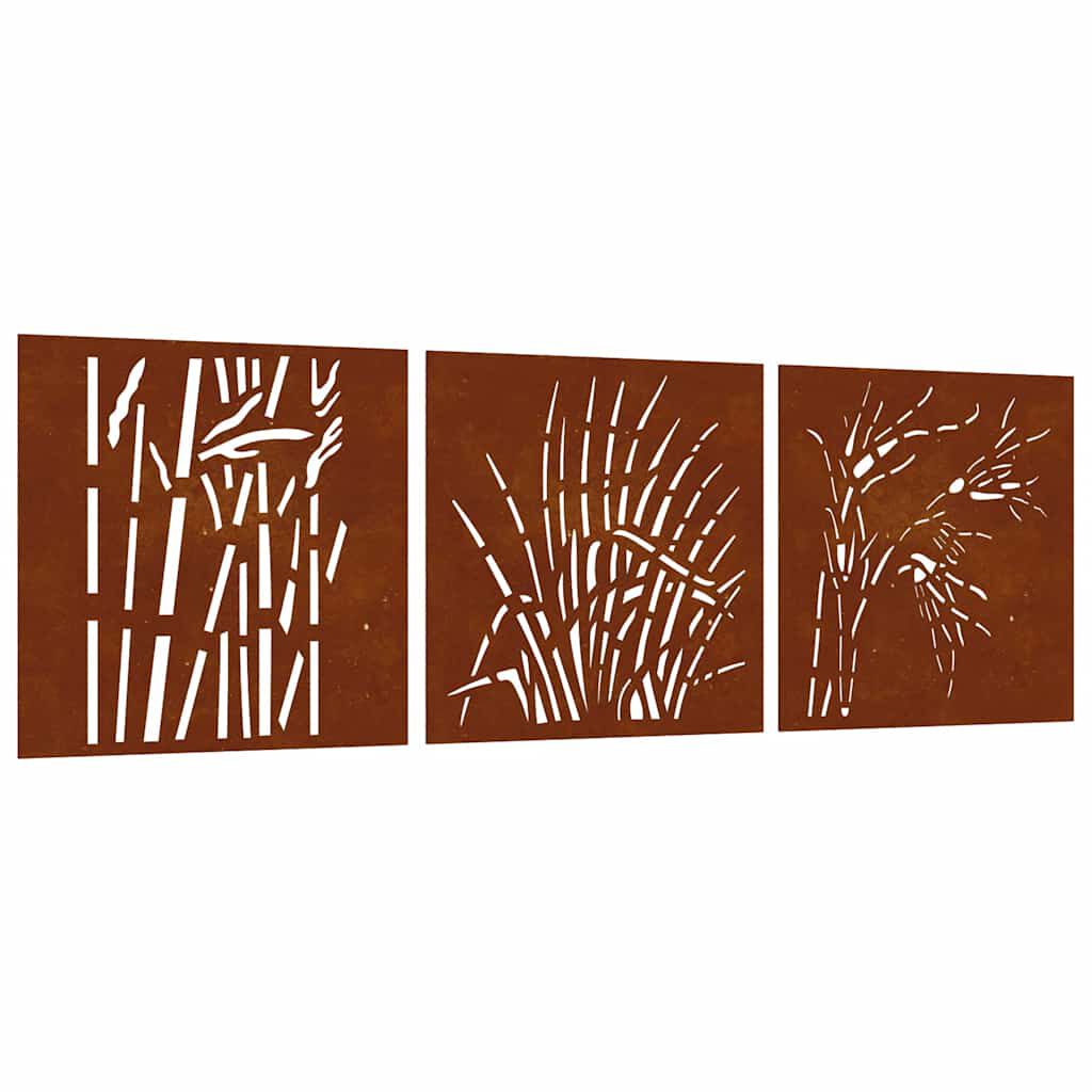 vidaXL Décorations murales jardin 3 pcs 55x55 cm design d'herbe