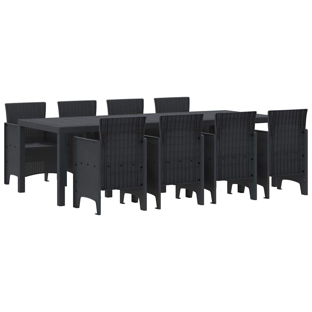 Structure en poly rattan moderne Le set de repas est fabriqué en poly rattan résistant aux UV, combinant élégance et durabilité. Sa texture et sa finition mate donnent un look sophistiqué et discret, le rendant adapté à divers espaces extérieurs, des terrasses aux jardins. Ce choix de matériau garantit une résilience contre les rayons durs du soleil tout en offrant un style à long terme. Composants d'assise fonctionnels Doté de coussins de siège en polyester remplis de mousse, ce set offre un confort ample pour des rassemblements prolongés. Les coussins sont équipés d'une fermeture éclair qui permet un retrait facile, vous permettant de maintenir le set sans effort. Son design de dos présentable ajoute un élément esthétique, tandis que les accoudoirs en poly rattan invitent à la détente. Durabilité & utilisation pratique Conçu pour l'extérieur, le Modern Garden Dining Set excelle en longévité avec sa construction en poly rattan et son cadre durable. Ces matériaux supportent l’épreuve du temps, offrant aux utilisateurs un cadre de repas stable et fiable. Ce design assure confort, que ce soit pour manger de jour ou se détendre sous le ciel du soir. Utilisation extérieure polyvalente Parfait pour les jardins et les terrasses, ce set s'adapte merveilleusement à divers contextes extérieurs. Son design épuré améliore n'importe quel espace, le rendant adapté pour manger, socialiser et célébrer des occasions spéciales. Passant sans effort de repas décontractés de jour à des sessions cosy en soirée, il sert de point focal pour tout rassemblement. Routines d'entretien simples Pour garder ce set impeccable, essuyez les surfaces avec un chiffon humide et rentrez les coussins à l'intérieur lors de temps inclement. Pour une protection supplémentaire, utilisez une housse pour meubles d'extérieur lorsque le set n'est pas utilisé, aidant à préserver son apparence et son intégrité au fil du temps.Rattan synthétique solide, fait pour durer