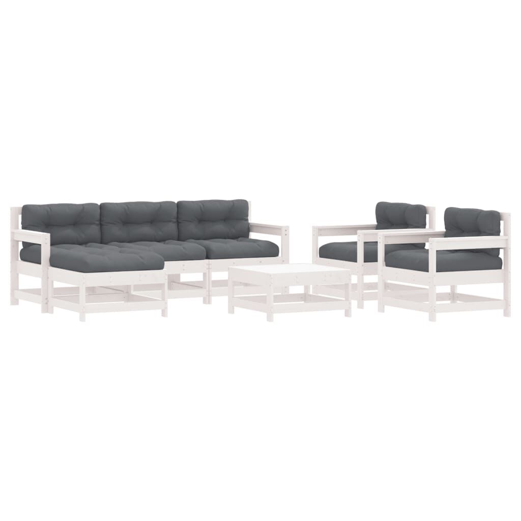 vidaXL Salon de jardin 7 pcs avec coussins blanc bois massif