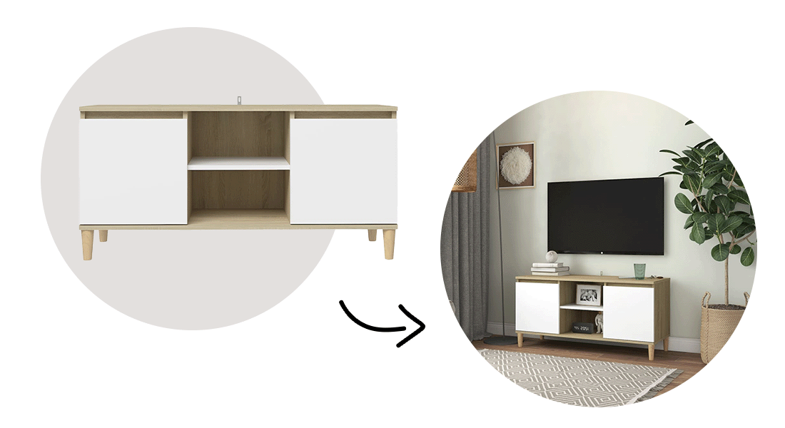 Optez pour des lignes épurées, un espace dégagé et une palette de couleurs neutres pour créer un sentiment de paix. Par exemple, un meuble TV qui combine une structure en bois naturel et compartiments blancs. Rangez vos affaires dans les tiroirs pour éviter le désordre. Mais, vous pouvez laisser quelques objets sur les étagères ouvertes pour apporter une touche de couleur.
