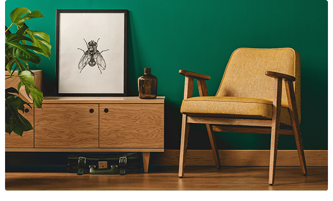 Les couleurs rétro populaires sont le jaune moutarde, le vert tendre, l'orange vif et les pastels comme la menthe et le rose foncé. Le rétro de nos jours est léger et lumineux et connaît beaucoup de combinaisons de couleurs, comme les pastels clairs avec le bois rétro foncé typique. Ajoutez des accessoires dorés ou en bronze comme touche finale !