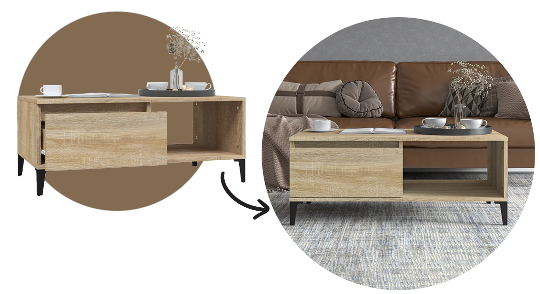 Le style maison de campagne nous invite à prendre notre temps et apprécier les petits moments. Pensez à aménager un coin détente pour passer votre temps libre en toute sérénité. Les tables basses rustiques peuvent être exactement ce qu'il vous faut pour un salon confortable.