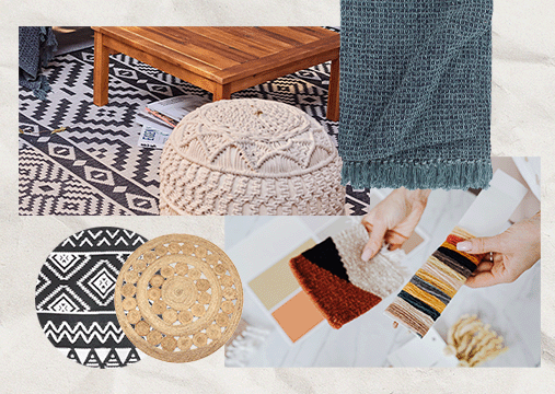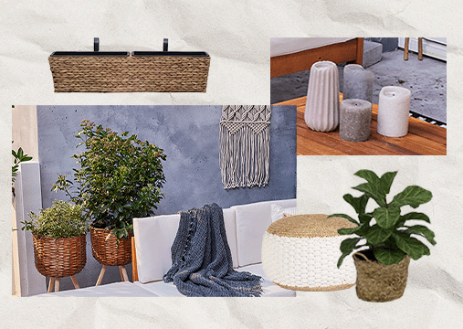 Pour votre balcon boho chic, choisissez des accents artisanaux, des formes arrondies, des designs doux avec des motifs organiques, et beaucoup de plantes.