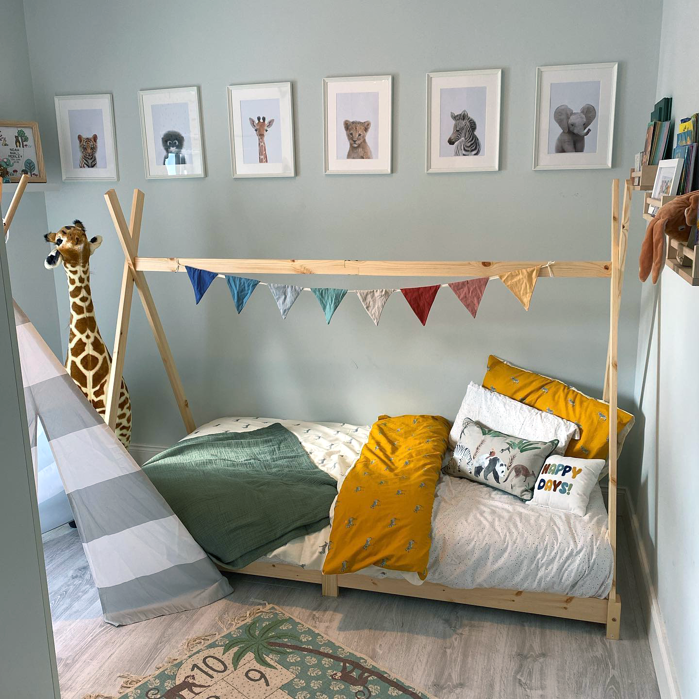 Avons-nous mentionné que les possibilités de créer des œuvres murales fantastiques pour la chambre d'enfants sont infinies ? Prenez, par exemple, ces collages adorables et inventifs. Obtenez des cadres et accrochez tout ce que votre enfant aime, des photos personnelles aux photos de la nature et aux personnages préférés. Vous pouvez également accrocher des cintres muraux en macramé ou toute autre décoration de bricolage sur laquelle vous et votre enfant pouvez travailler ensemble pour donner à la chambre de votre enfant une ambiance plus chaleureuse.